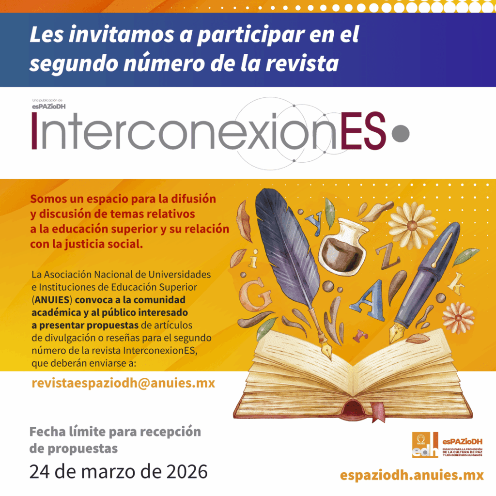 El Espacio para la Promoción de la Cultura de Paz y Derechos Humanos en las Instituciones de Educación Superior (EsPAZio DH-ANUIES) busca impulsar acciones estratégicas que promuevan una cultura de paz y el respeto a los derechos humanos en el ámbito educativo.